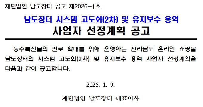 [입찰공고]남도장터 시스템 고도화(2차) 및 유지보수 용역